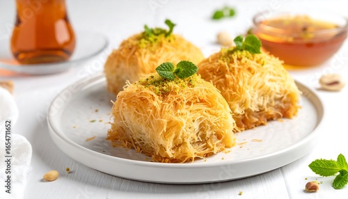 baklava, dessert, sweet, pastry, food, arabic, middle eastern, pistachio, crispy, delicious, honey, mint, tea, plate, food photography, baked goods, eatery, bakery, taste, sweetness, treat