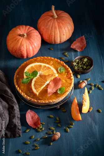 Sweet pumpkin tart made of jam, oranges and pumpkins.