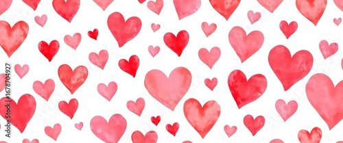 Sweet red & pink pastel watercolor hearts seamlessly repeating Perfect for Valentine's Day , fabric, handpainted