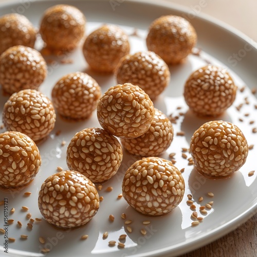 Sweet sesame balls on white ceramic plate