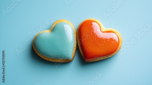 Sweetheart Cookies: A Pair of Glazed Heart-Shaped Cookies on a Blue Background