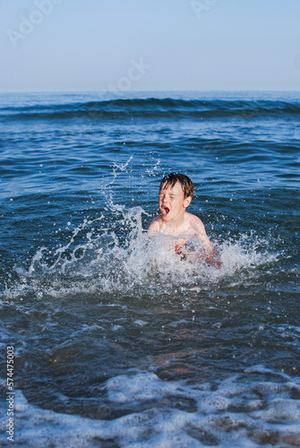 swim, learn to swim, child laughs, waves, splashes, ocean, danger on water