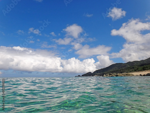 swimming, beach, sea, shore, coast, sand, japan, beautiful, blue, clear, cloud, day, destination, distant, horizon, horizontal, idylli, island, ocean, rock, rocky, scenic, sky, surf, transparent, travel, tropical, turquoise, vacation, water, white