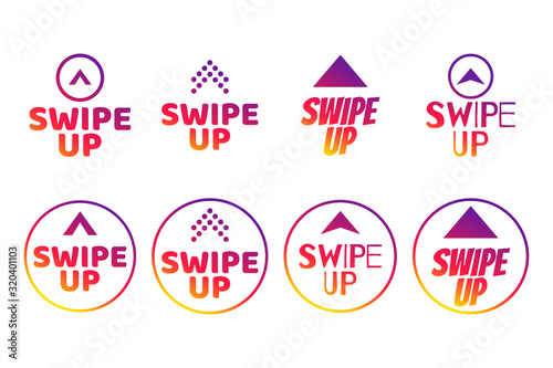 Swipe up lettering with arrow pointer for stories . Social media. Vector illustration.