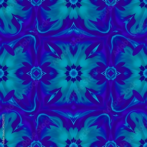 floral, pattern, seamless, tile, blue, teal, turquoise, purple, violet, abstract, swirl, design, geometric, ornate, intricate, background, wallpaper, texture, elegant, sophisticated, art, graphic, graphic design, decor, home decor, fabric, textile, print, interior design, digital artwork, illustration, stylish, trendy, vintage, modern, contemporary, art deco, mandala, hallucinogen, hypnotic, dreamlike, fantasy, nature, organic, flowing, smooth