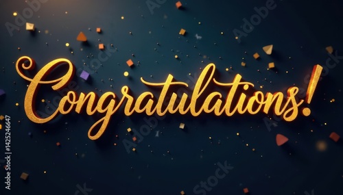 Swirling gold "Congratulations!" script on dark backdrop , festive, vintage, texture