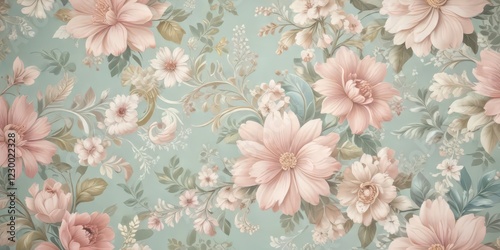 Swirly floral retro wallpaper with pastel colors and intricate patterns , botanical, paisley, garden