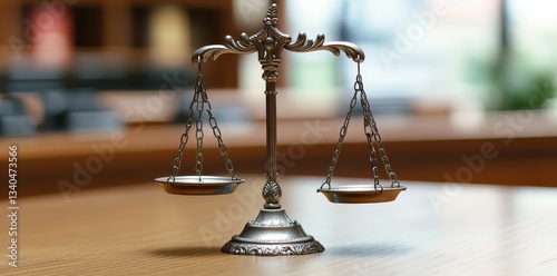 Symbol of Justice: Legal Scales on a Lawmaker's Desk Representing Fairness and Equality in the Legal System.