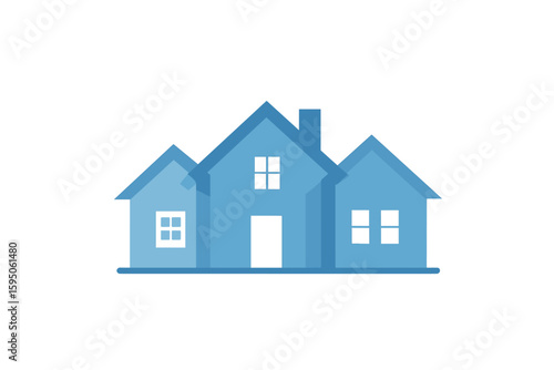Symmetrical Blue House Icon: Minimalist Dwelling for Property and Lifestyle Interfaces