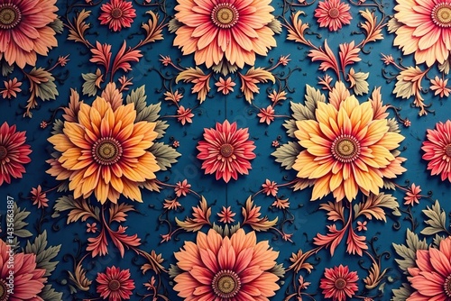 Symmetrical damask pattern, large scale repeating rosettes, geometric, image
