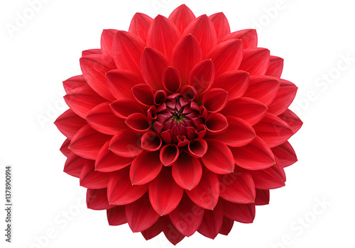 Symmetrical Large Red Dahlia Flower Head Isolated on PNG Background.
