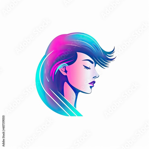 Synthwave Neon Cyberpunk Female Logo, Female Business Woman Gamer with Glasses, Synthwave Beautiful Lady Logo