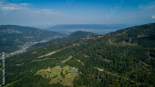 landscape, mountain, nature, sky, mountain, summer, view, blue, forest, green, panorama, cloud, travel, tree, vale, hill, tree, grass, beautiful, cloud, panoramic, autumn, tour tourism