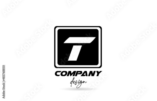 T alphabet letter logo icon with black and white design and square. Creative template for company and business