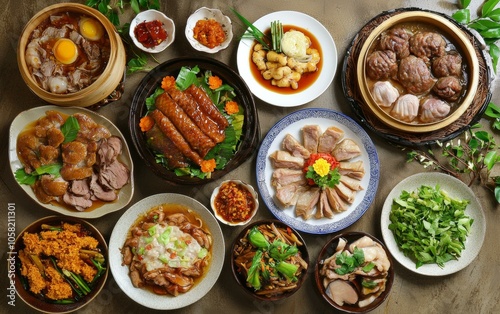 food, table, dish, salad, grilled, meat, bread, dessert, feast, dining, meal, cookery, variety, colourful, plate, culinary, gathering, delicious, widener, banquet, chinese, new, year, happy, background, lunar, 2025
