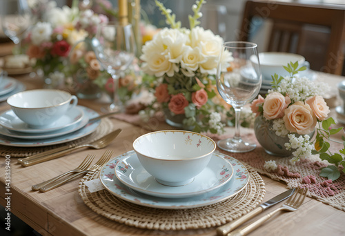 table, plate, setting, cup, glasses, flower, set, fork, napkin
