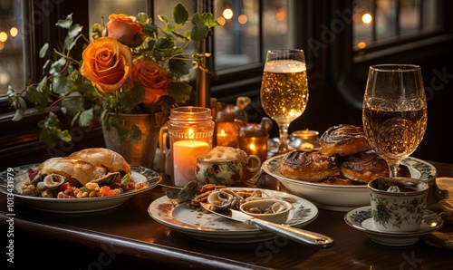 Table Set With Food and Wine