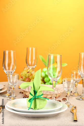 setting, green, yellow, tone, colours, background, celebration, decoration, design, dinner, festive, folded, fork, glasses, goggles, holiday, invitation, knife, modern, napkin, napkin, party, plate, eatery, ribbon, napkin, shape, silver, style, table, wedding, wine