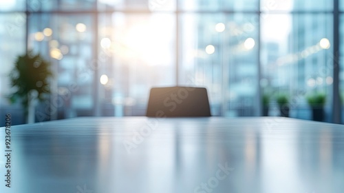 Table with a blurred office background, designed for effective advertising and presentations of business products. Generative ai