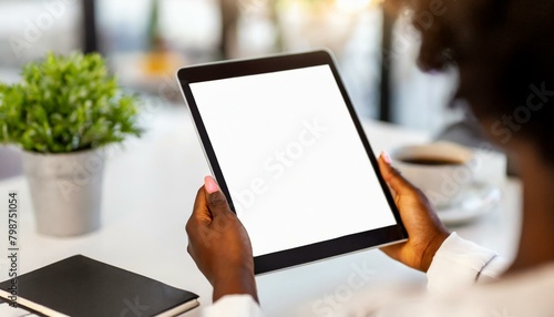 Tablet held by Woman in an Office - Mockup for Application or Web Design - Template for Presentation of Graphic Design - Corporate Representation at Consumers