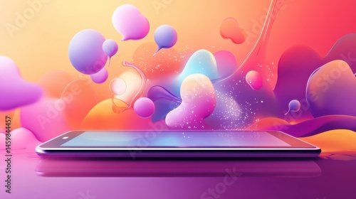 tablet, user, communicating, global, cyberspace, communication, chat, message, forum, concept, website, illustration, online, digital, connection, virtual, network, technology, conversation, talking, dialogue, community, modern, device, portable, screen, messaging, discussion, mobile device, touch screen