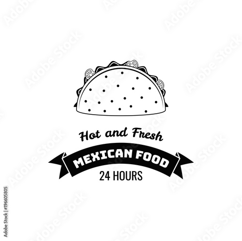Taco mexican food. Hot and fresh lettering. illustration.