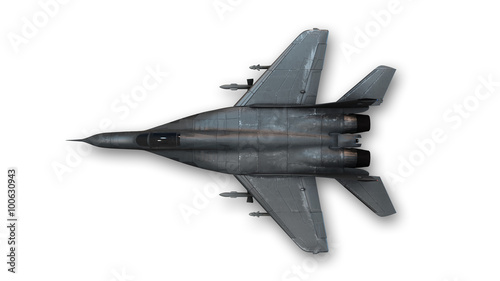 Tactical fighter jet, military plane isolated on white background, top view