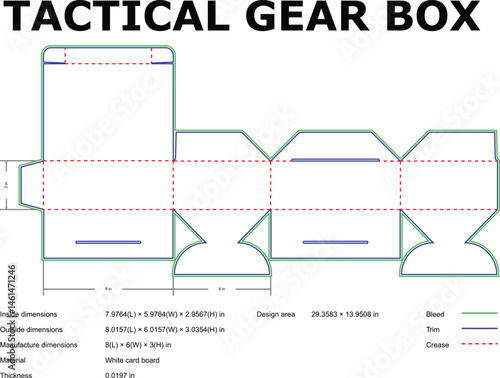Tactical Gear Box Template Packaging Design Blueprint With Dimensions For Manufacturing