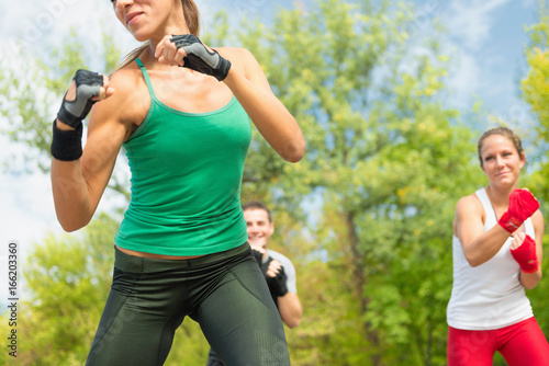 uppercut, exercise, kickboxing, guard, physical exercise, fitness, athlete, nature, park, boxer, boxing, front view, bod, muscular, healthy lifestyle, strength, summer, outdoors, people, well-being, selective focus, day, smiling, sports equipment, tan, green, black, white, red, woman, young, missy, female, male, man, 20s, 30s, adult, adults only, horizontal, color image, photo