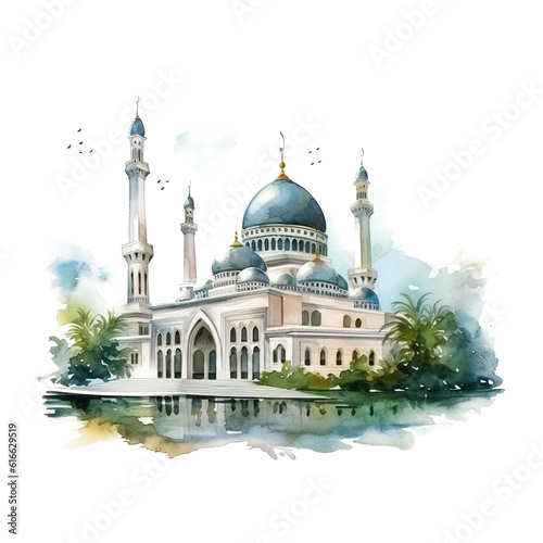 Taj mahal, mosque, watercolor, PNG background