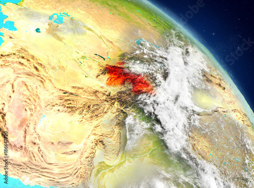 asia, earth, tajikistan, asian, atmosphere, cloud, country, globe, highlighted, illustration, international, map, orbit, political, red, space, earth