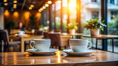 Take away two coffee cups empty blank copy space for your design text or banner of brand on the table in the cafe with light
