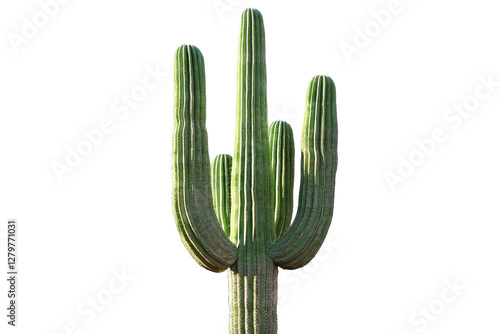 Tall Green Cactus with Multiple Arms Isolated on White Background
