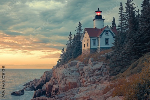 Tall Lighthouse Watching Over Sea from Cliffside
