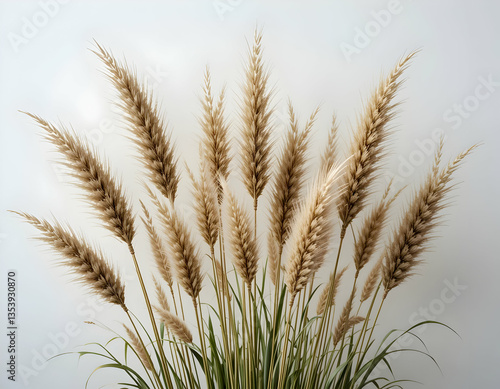 Tall Ornamental Grass Plumes Against Soft White Backdrop Adds Texture