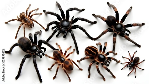 tarantula, spider, arachnid, predator, arthropod, wildlife, invertebrate, dangerous, venomous, creepy, scarey, phobia, halloween, collection, specimen, tropical, species, biology, nature, white background, closeup, detailed, natural science, zoology, terrarium, eight legs