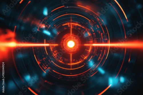 Target focusing beam on concentric circles digital art futuristic environment high-tech setting abstract viewpoint for seo impact