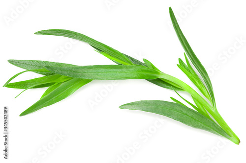 Tarragon leaves isolated on white background. Artemisia dracunculus.