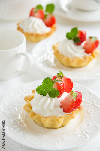 dessert, whipped, cream, cake, closeup, vegetarian, ripe, foliage, berry, delicious, green, white, red, food, basket, tartlet, mousse, strawberry, beauty, cookie, nutrient, ingredient, fruit, fresh, nourishment, juicy, eating