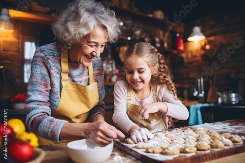 Taste of Tradition: In a Rustic Kitchen, a Grandmother and Child Cook Together, Sharing Love, Connection, and Happiness through the Art of Pastry.