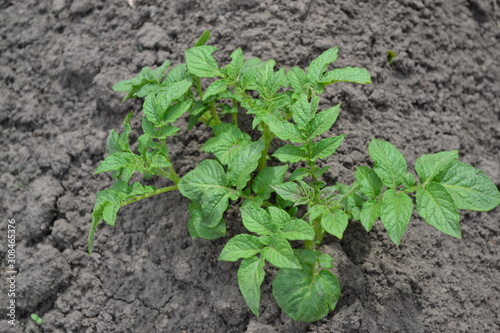 Tasty and healthy. Type of perennial tuberiferous herbaceous plants of the genus Solanum. Solanum tuberosum. Colorado beetles, Leptinotarsa decemlineata. Green potato leaves