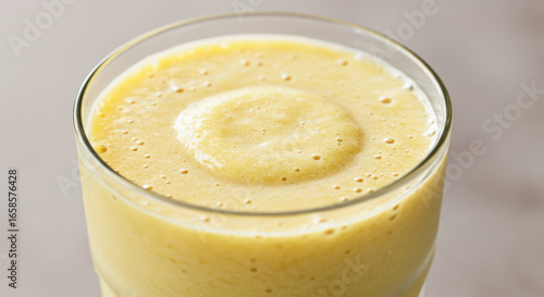 Tasty banana milkshake. Tropical fruit juice or smoothie. Creamy tropical drink