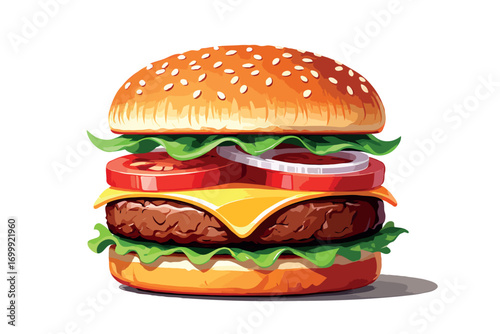 hamburger, burger, food, cheese, beef, cheeseburger, sandwich, bread, bun, meat, isolated, lettuce, fast, tomatoes, meal, white, fat, lunch, onion, sesame, snack, delicious, dinner, unhealthy, salad
