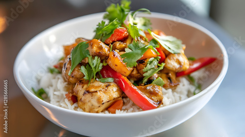 stir fry, chicken, vegetable, rice, homemade, colourful, tasty, food, dish, meal, dinner, lunch, cookery, epicure, asian, culinary, delicious, healthy, nutritional, diet, plate, pepper, vibrant, herb, coriander, parsley, fresh, spice, flavorful, cooking, culinary arts, receipe, traditional, cultural, savoury, garnish, presentation, balanced, wholesome, appetising, mouth-watering, aroma, kitchen, dining, bowl, sauce