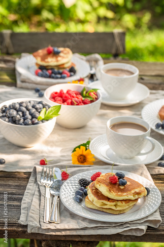 breakfast, fruit, garden, blueberry, stack, plate, battercake, delicious, hot drink, meal, raspberry, food, blue, pile, homemade, brunch, sweet, dessert, tasty, american, snack, cookery, crepes, rustic, healthy, wooden, berry, organic, health, freshness, flower