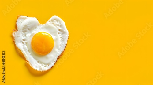 Tasty sunny egg love heart shaped on yellow background ready to serve for breakfast, view from above. copy space concept.