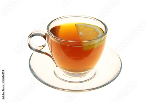 Tea in a glass cup with lemon slice