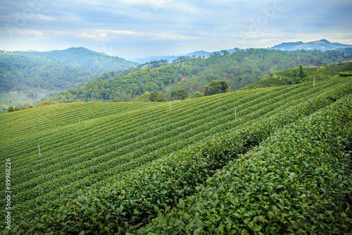 Tea plantation landscape with blue sky background at 101 Tea,Nor