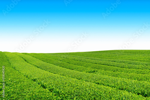 tea plantation on Jeju Island, tea farm on the hill in a clear day.