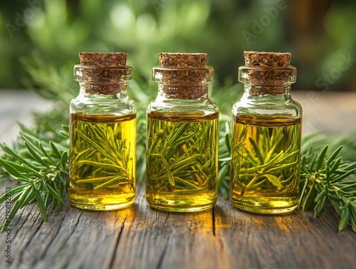 Tea Tree Oil Bottle with Fresh Green Leaves